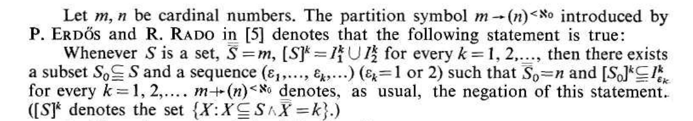 Erdős, P.; Rado, R. (1956), A partition calculus in set theory, Bull. Amer. Math. Soc., 62 (5): 427–489.